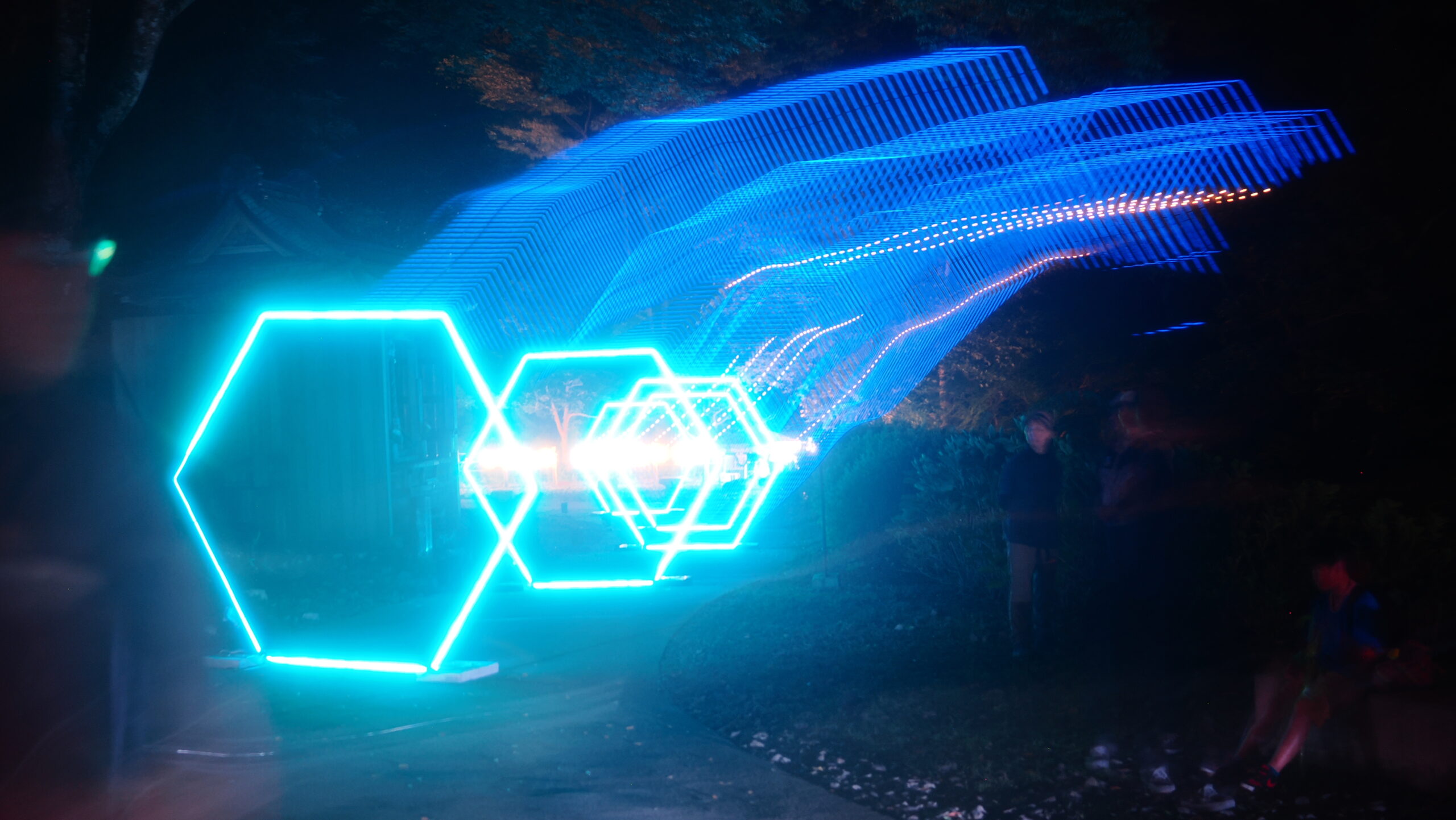 会場内はライトで飾られていた(※急ぎバスに向かう手ブレ)
